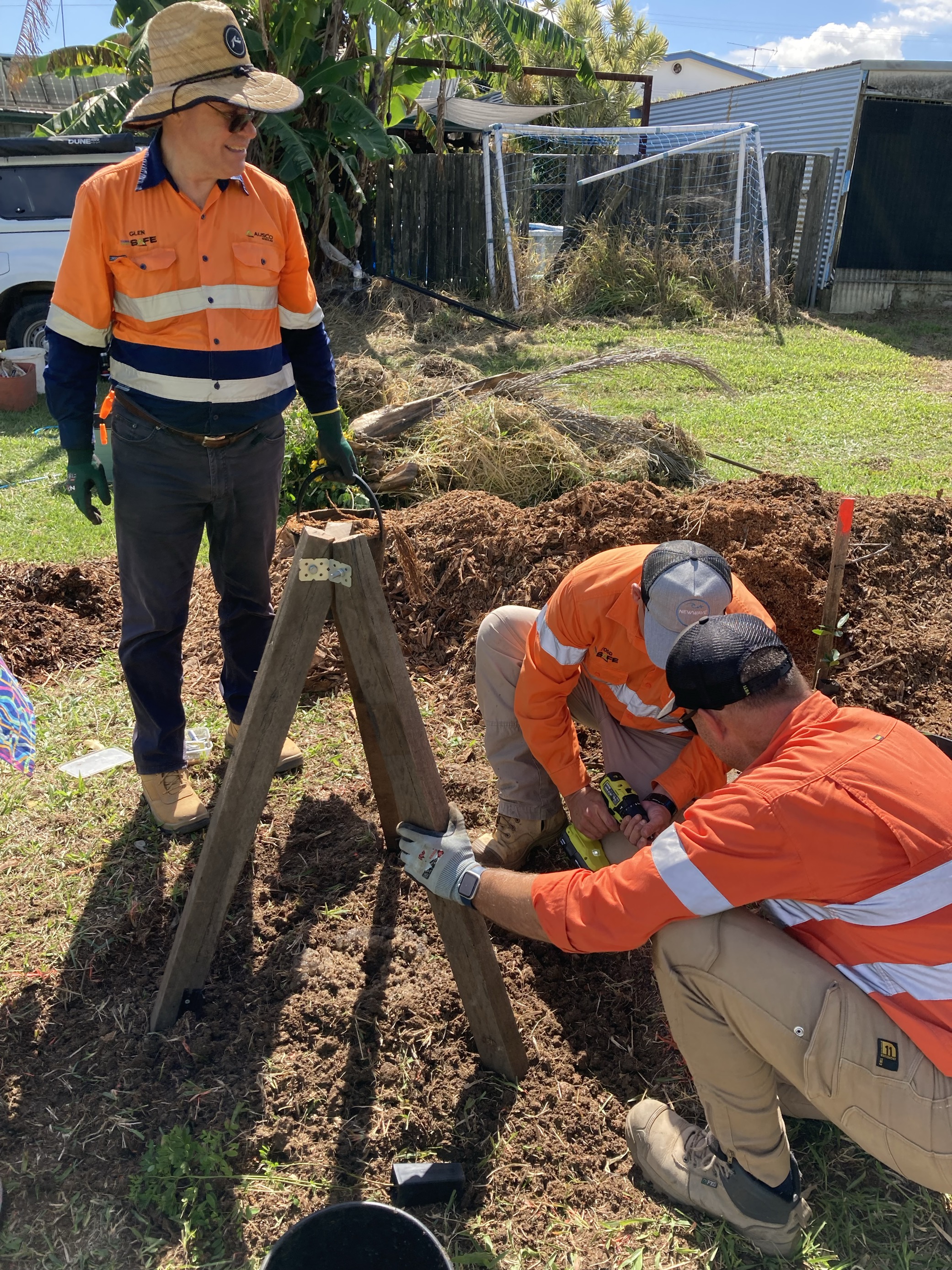 The Ausco construction team stepped up to assemble our Tripod ready for planting the Twining Guinea Flower.