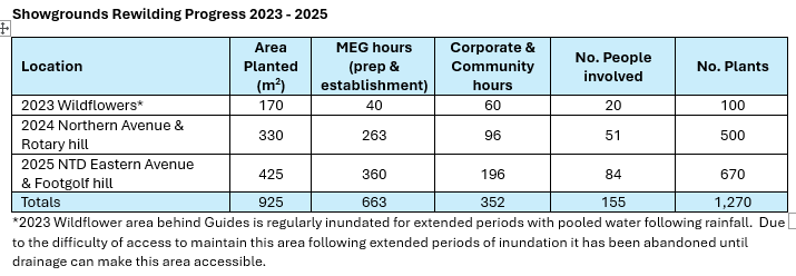 Building on the popularity the Showgrounds the Trust want to create a perimeter walk. Reinstatement of the original ecosystem fits well with this plan. Revegetation (also called regeneration or rewilding) directly plants seedlings. This is the fastest way to reinstate a forest.