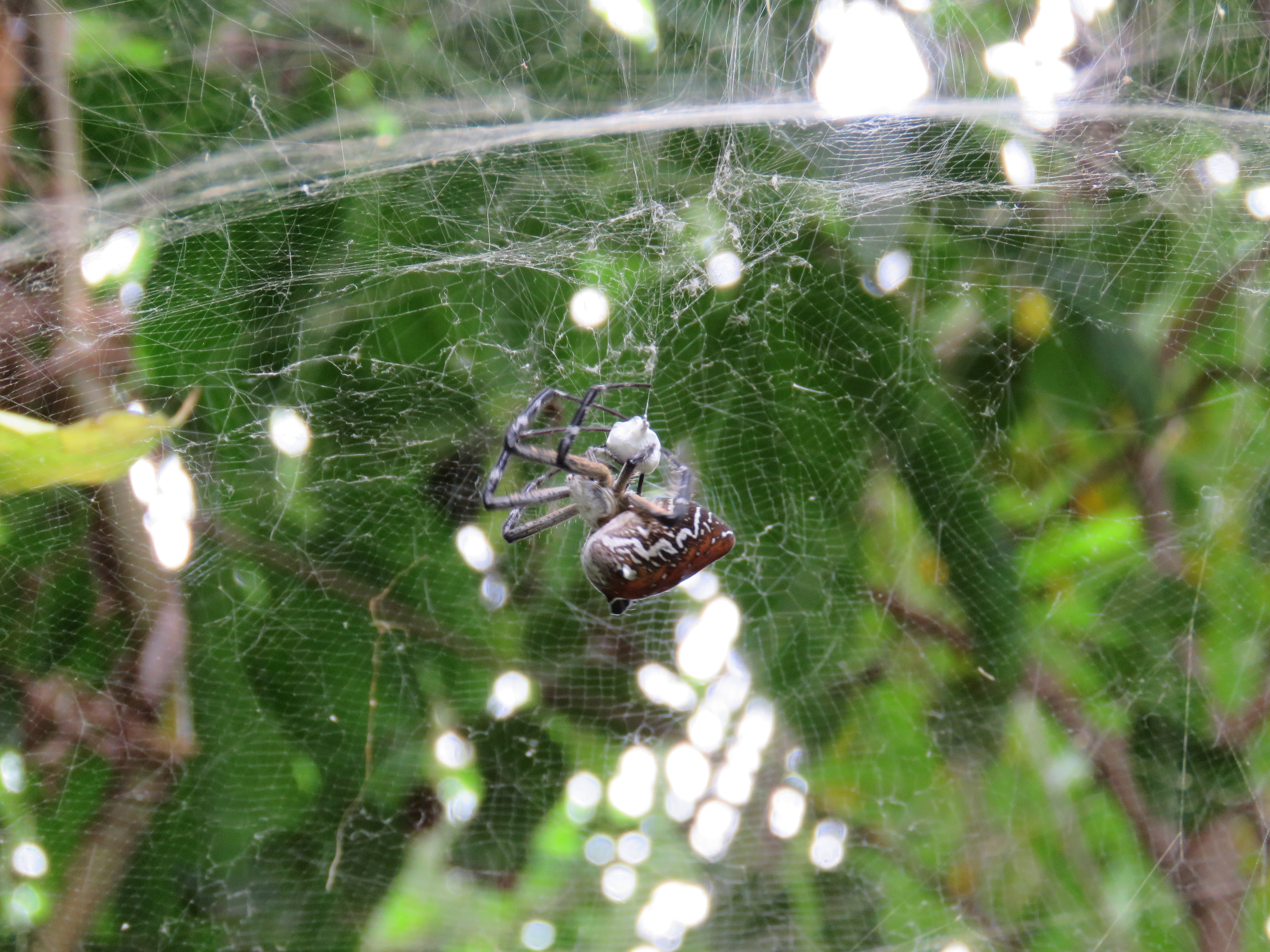 Dome Tent Spiders Cyrtophora moluccensis create webs peaked in a shape like a circus tent.