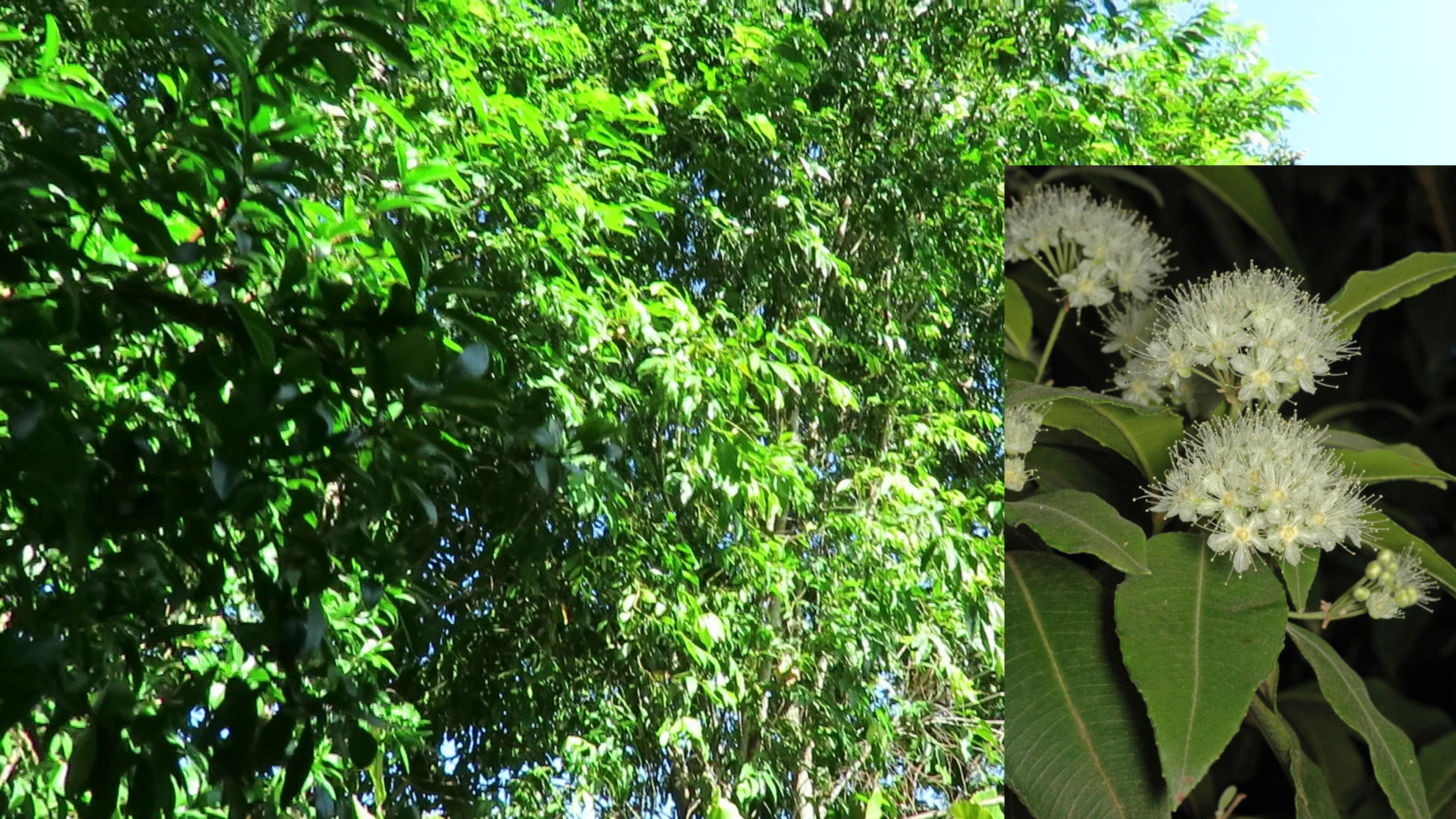 Greg refers to the Small-leaved Lilly Pilly Syzygium luehmannii as a 7-Eleven for possums, fruit bats and Figbirds Sphecotheres vieilloti.