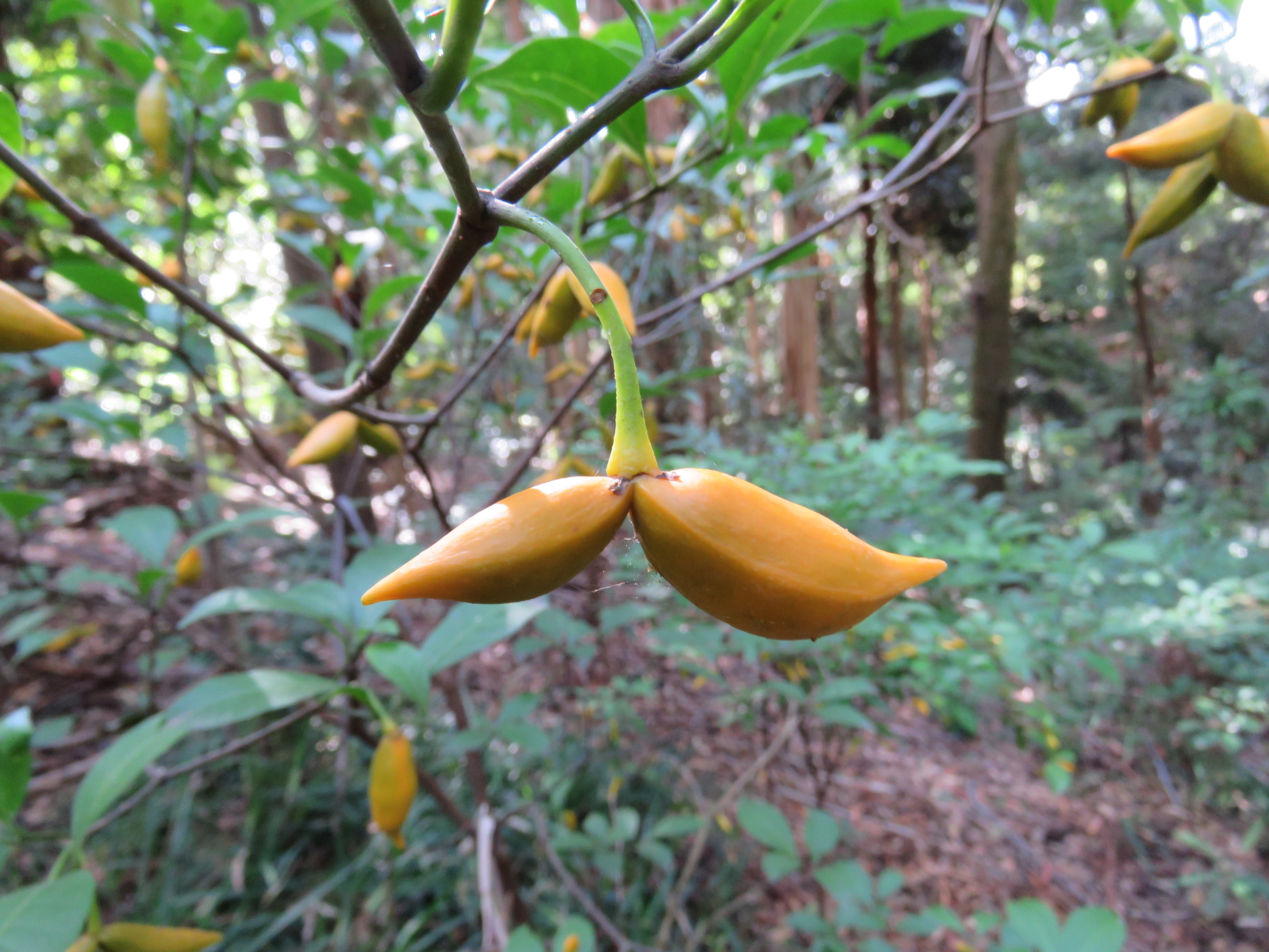 The most unusual discovery has to be the Banana Bush Tabernaemontana pandacaqui with its banana like fruit. An attractive and interesting plant occurring naturally in coastal Qld, northern NSW, WA and NT. While its attractive white flowers and fascinating fruit the milky sap is toxic, similar to highly poisonous Oleander, so care should be taken.