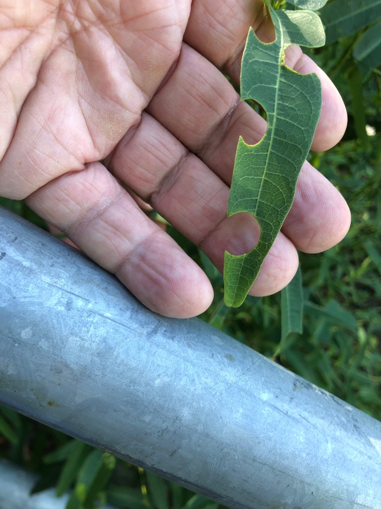 Leaf-cutter Bees at Crosby Road Bushcare used leaves of Native sarsaparilla Hardenbergia violacea. The female cuts circular sections out of the leaves before rolling up to carry off to their nest site.