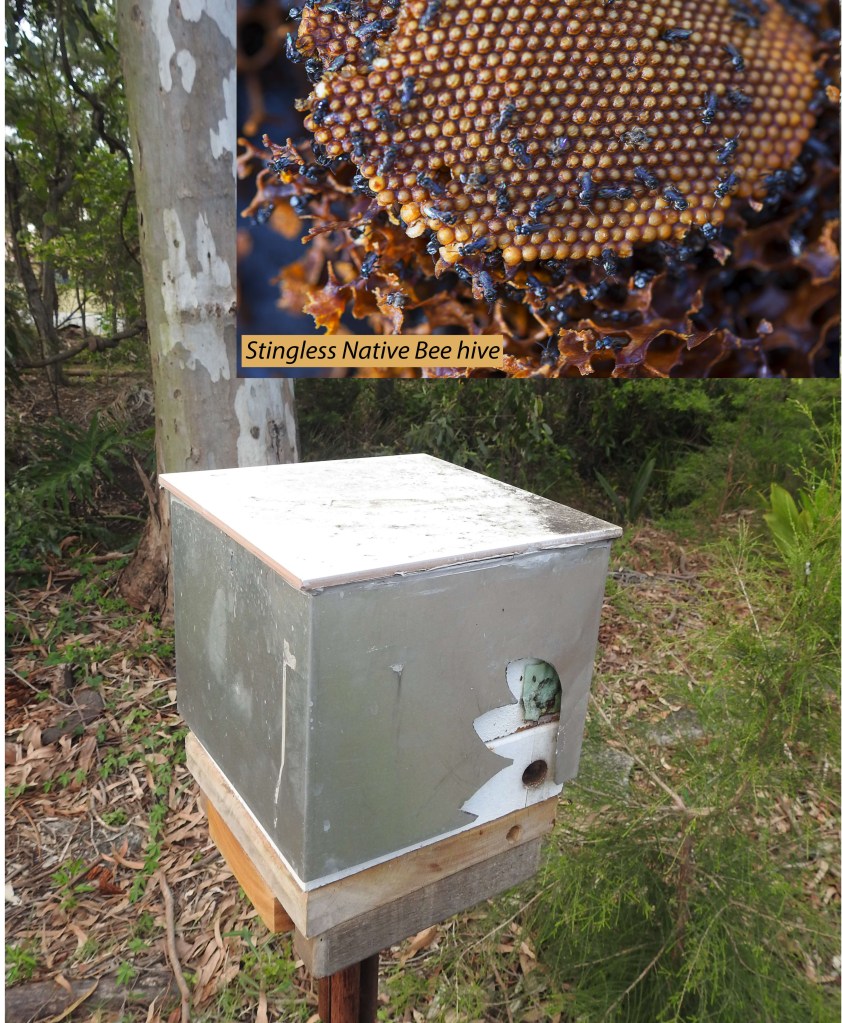 People are often thinking of the Native Stingless Bees Tetragonula sp. which, unlike solitary native bees, form colonies and make honey. The colonies can be housed in hives allowing people to purchase a hive to install in their garden.