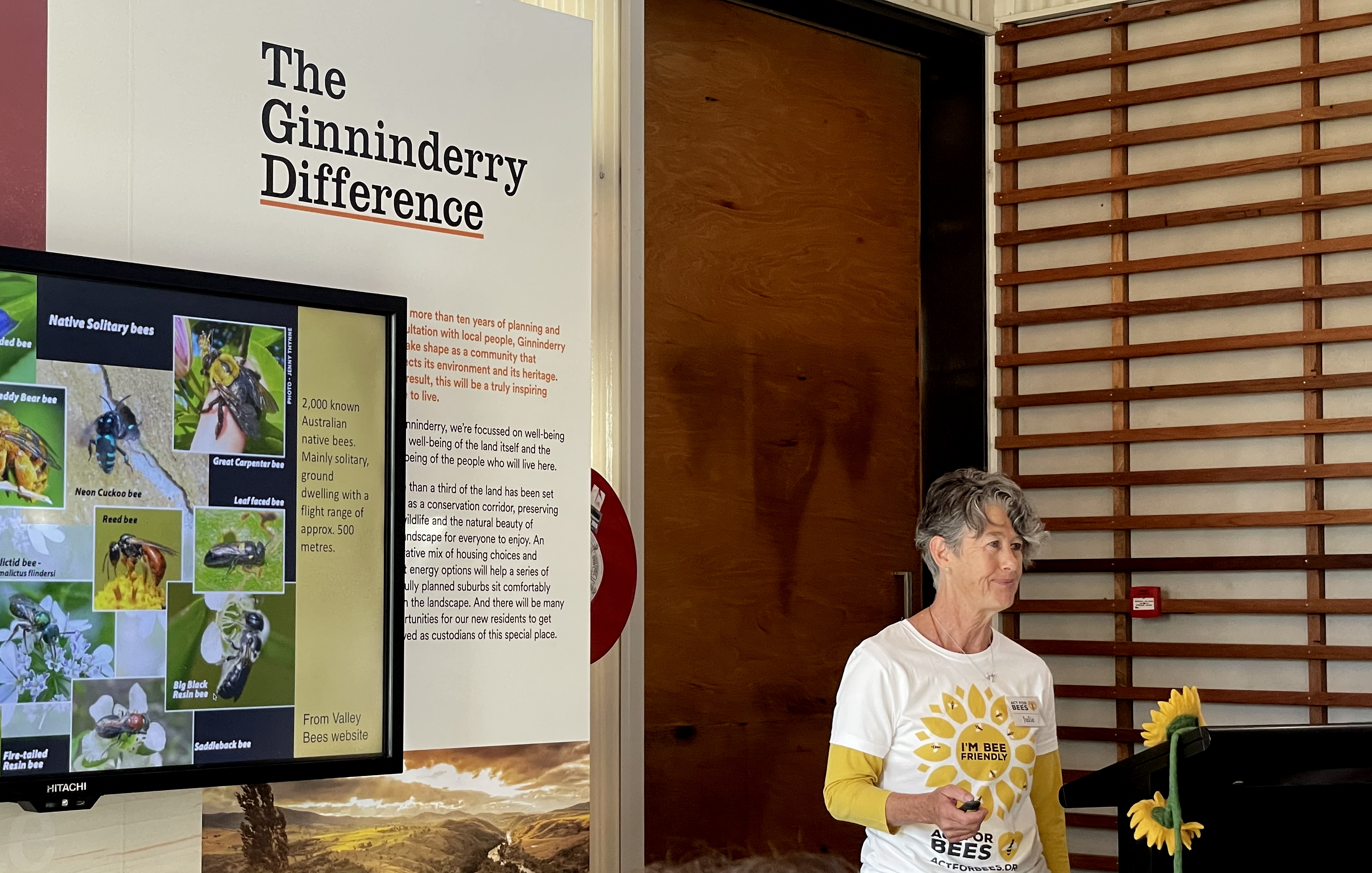 “This conference was specifically targeted for those within the Urban Design, Landscape Architect, Planning and Development Industries – both private and government sectors and included speakers from industry and government to inform why pollinator corridors are important, the planning process including how RedBox Designs planned for 200 metre grids of year-round flowering for native bees, the use of ACT Govt Plant Species for Urban Landscape Projects, climate adaptation and tree selection and community support.” Julie Armstrong ACT for BEES.