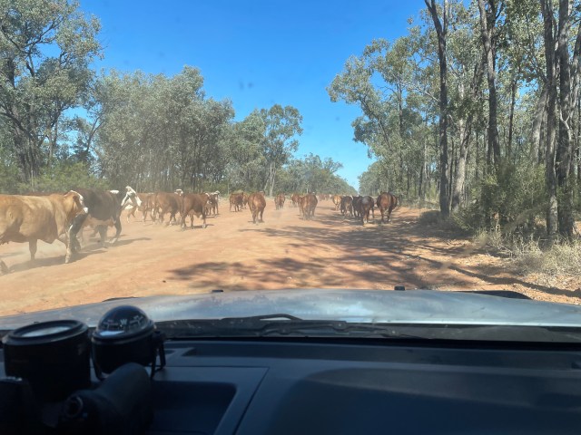 Not long on the road we strike a rural traffic jam with a herd of cattle taking up the whole road and headed in our direction. With careful slow driving and lots of enquiring looks from cows, we eventually get past.