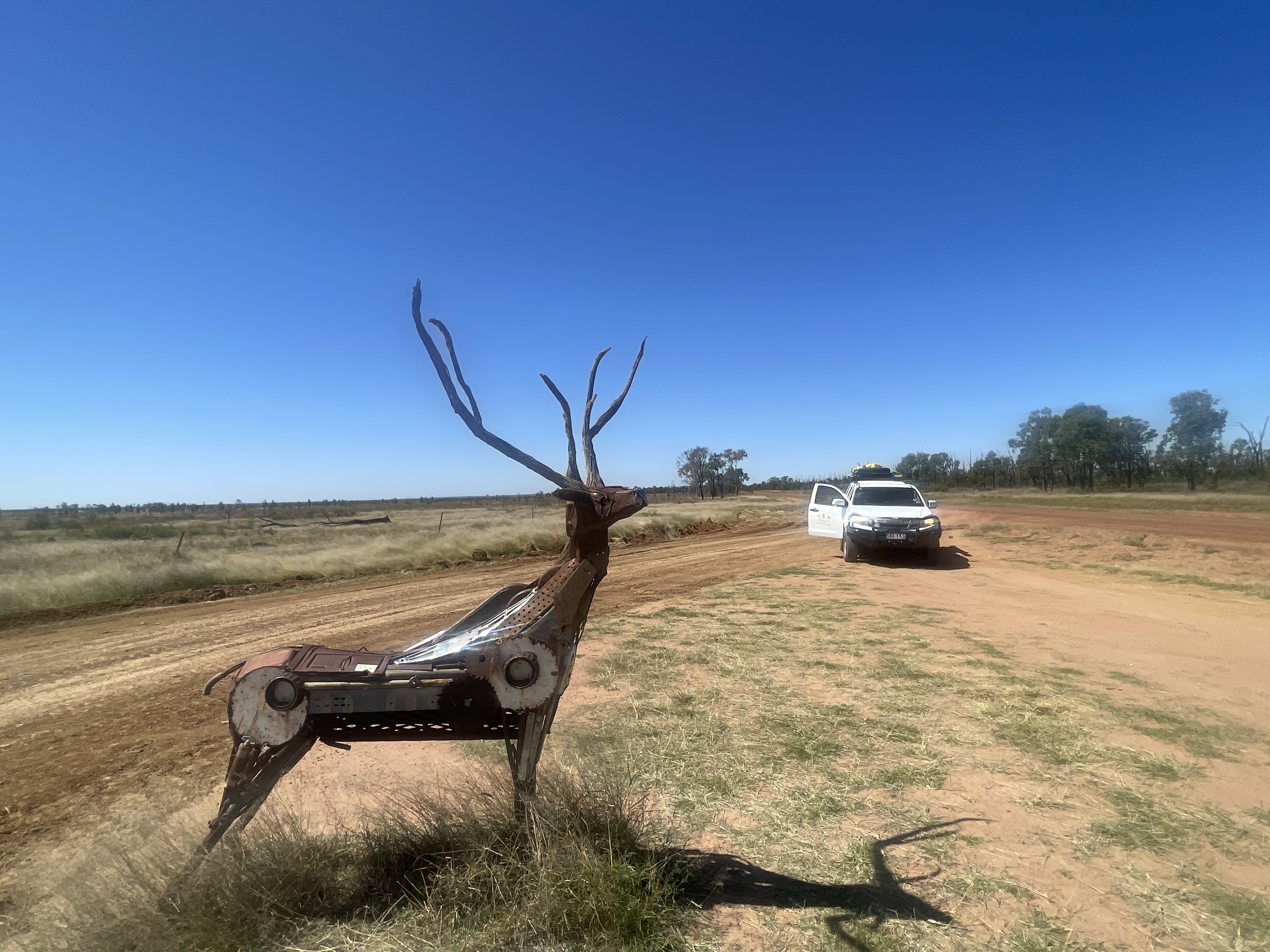 Like finding the Sculptures in the Scrub in Pilliga Forest it is incongruous to come upon a sculpture of deer beside a dirt road miles from any town,