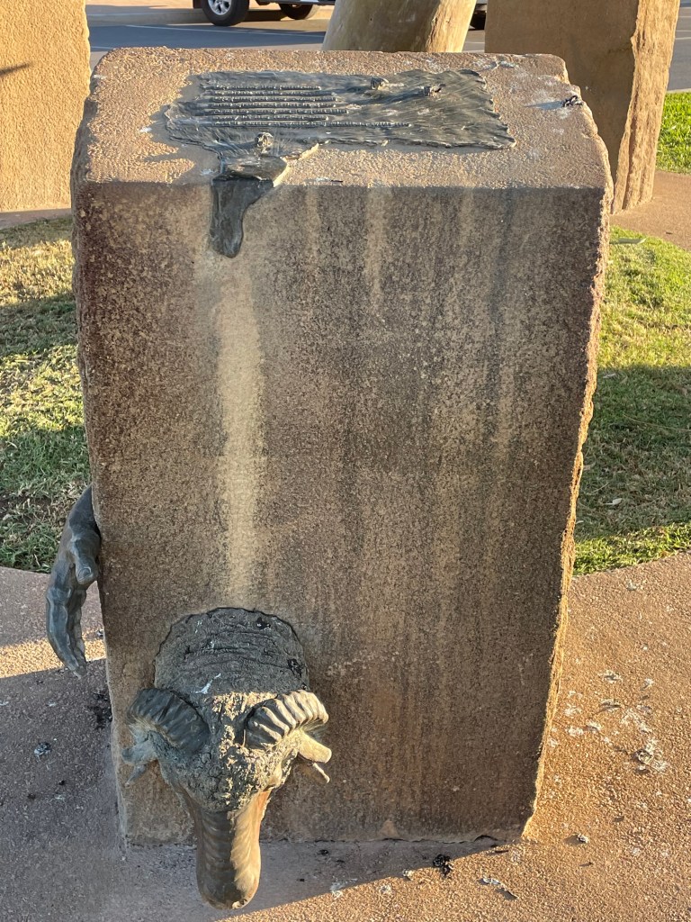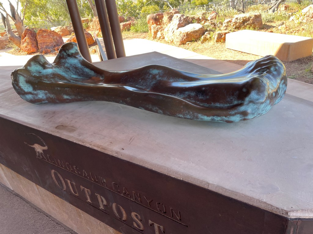 The Dinosaur Canyon includes a bronze sculpture of the right femur of a Diamatinasaurus matildae. About the length of an elephant femur but much thicker.