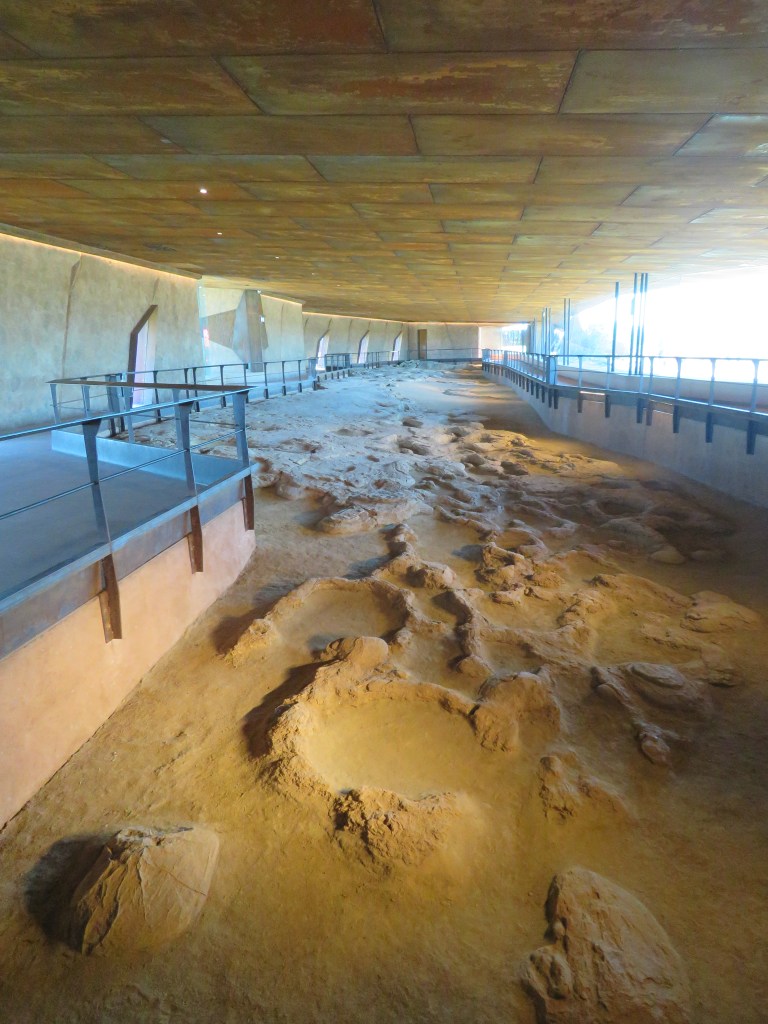 The striking architecture blends well with the landscape. The site includes three separate facilities Fossil Preparation Laboratory, Collection Room, Dinosaur Canyon and the Cretaceous Café.