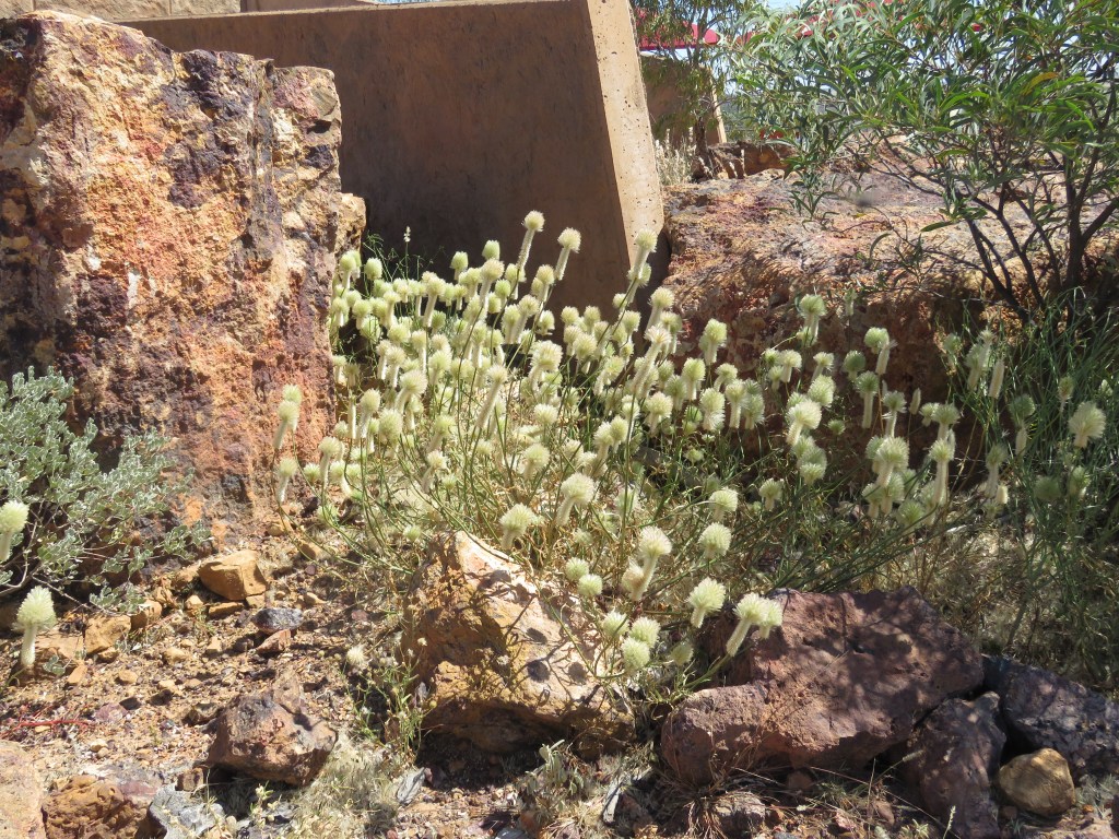 While I was on the tour Ann explored the amazing native vegetation on site. As well as the Ptilotus exaltatus Pink Mulla Mulla we found beside the road there is also the creamy coloured Ptilotus polystachyus Longtails, Prince of Wales Feathers.