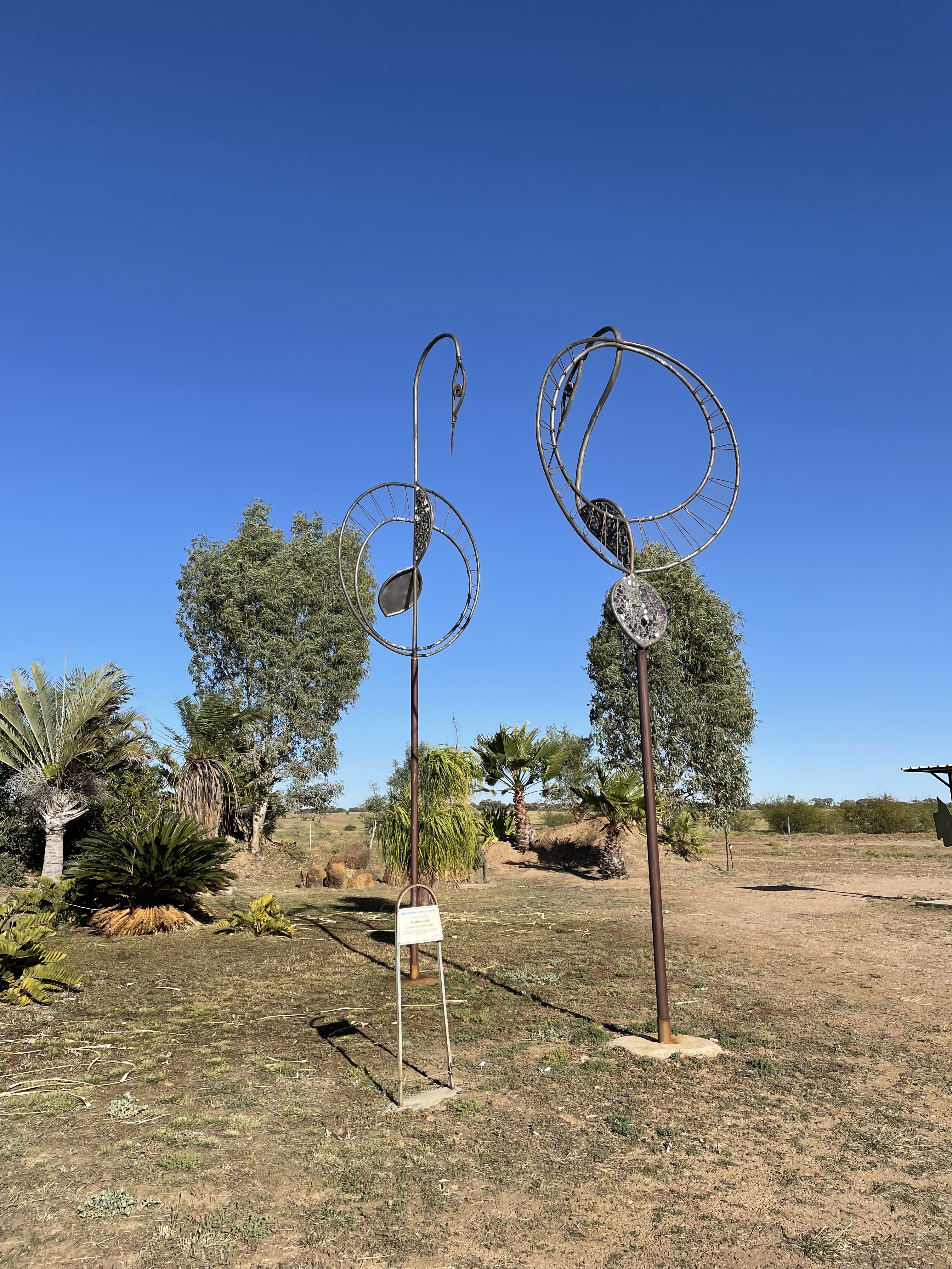 Rhythm of Life by Milynda Rogers and winner of the 2014 Sculpture Festival features two Brolgas in what looks like a courting dance.