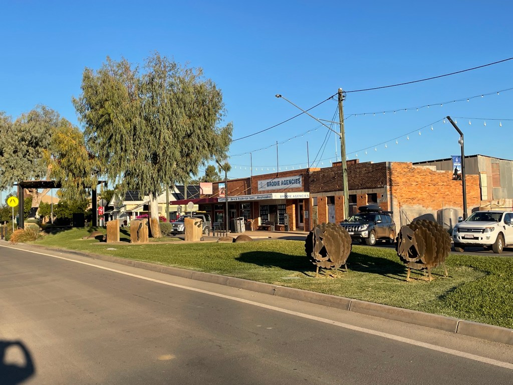 Sheep sculptures in the main street are complemented by an excellent series of sculptures telling the Waltzing Matilda story.