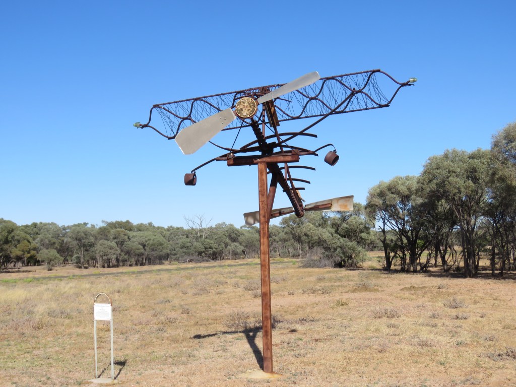The Cessna by Rupert Ballinger is appropriately at the entry to the Muttaburra airport.