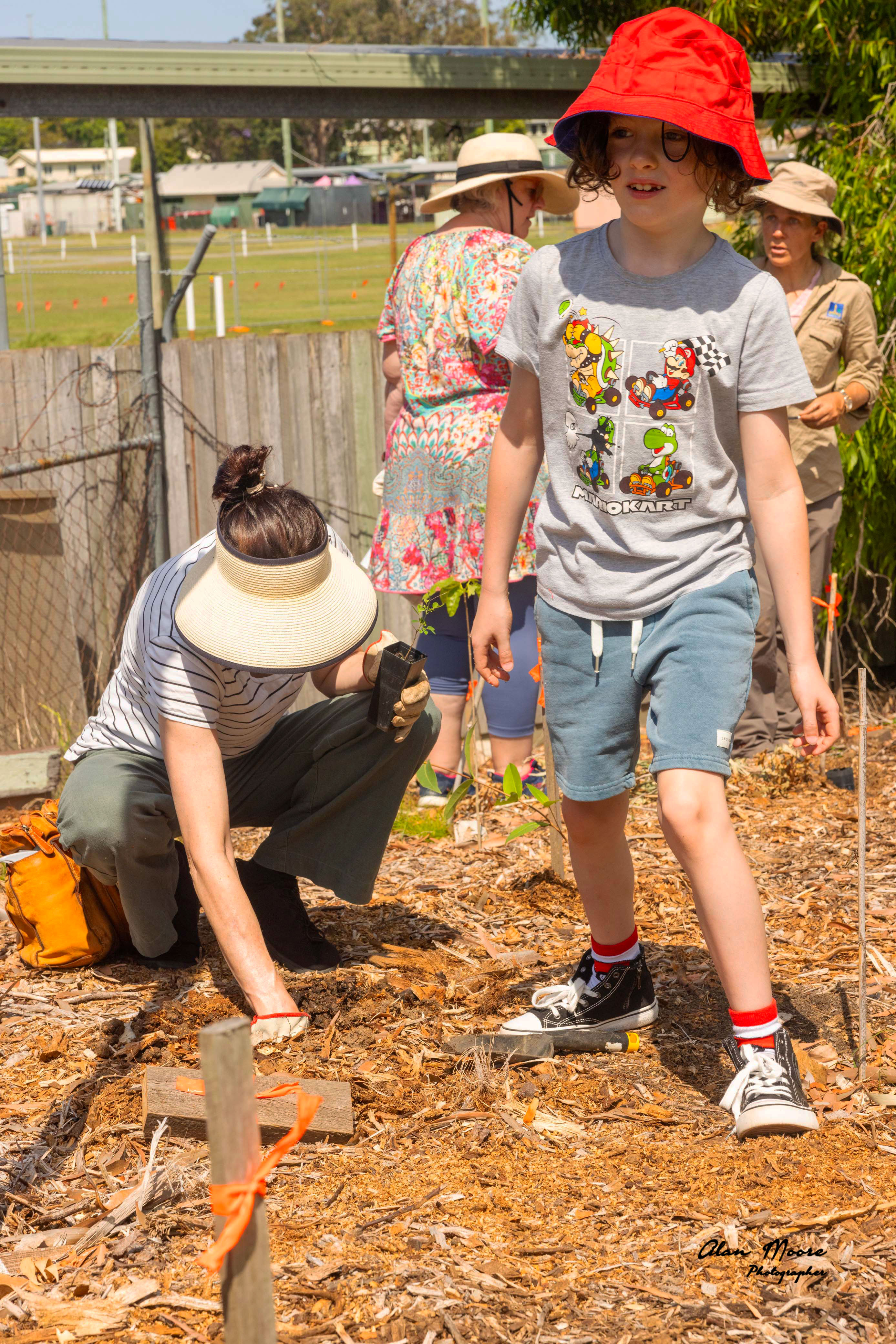 Good site preparation is vital part of creating an urban forest. To avoid using herbicides and maximise efficiency our methodology is to use a thick layer of cardboard to cover the grass rather than digging it out. First step is a sprinkling of Bactivate which is like a probiotic for soil. Second is a thick layer of used cardboard to suppress regrowth of the grass and weeds. Next is a thick layer (approximately 15cm) of mulch which is a mix of forest mulch and used sawdust from the animal display at the annual show. The benefits of mulch for the urban forest are: weed control, water retention, manage erosion and most importantly keeps the ground cool promoting the mirco-biology (health) of the soil.