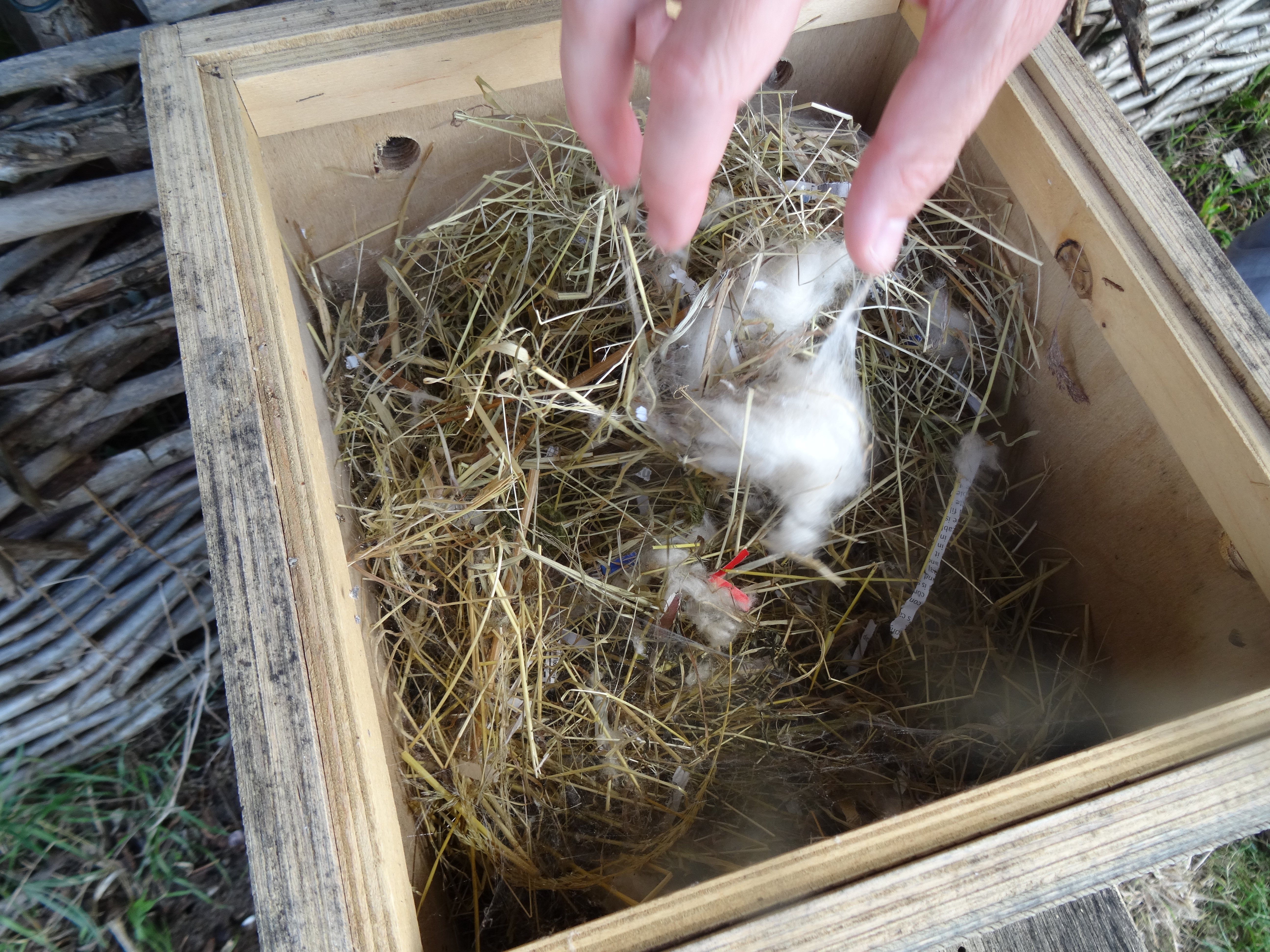 A number of Bumbles Bees will nest together in the one box using grass and wool to create nests.