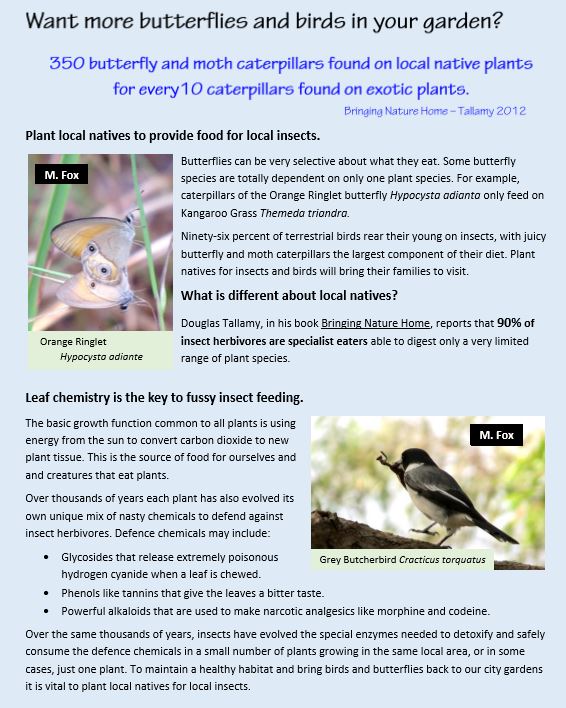 Planting Richmond Birdwing Butterfly Vines Pararistolochia praevenosa is a valuable contribution to conservation of this spectacular but vulnerable butterfly.
